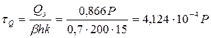 Так как при расчете угловых швов не учитывалась поперечная нагрузка, которую по условной методике расчета воспринимают только вертикальные швы, производим проверку выбранных швов по расчетным напряжениям в т. 1 (см. рис. выше). В этой точке действуют касательные напряжения от момента и от поперечной нагрузки :