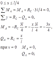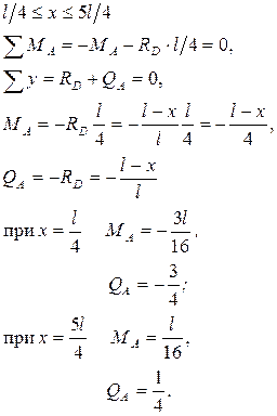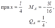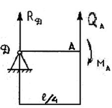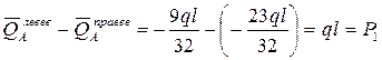 Определяем . Так как в сечении А приложена сосредоточенная сила, то величина действующей поперечной нагрузки в этом сечении неопределенна (изменяется скачком). Поэтому определенной является поперечная нагрузка левее сечения А и правее сечения А. Разность между этими поперечными нагрузками должна быть равна по величине сосредоточенной силе: