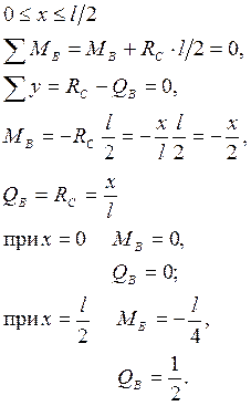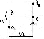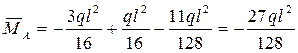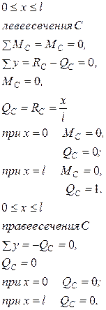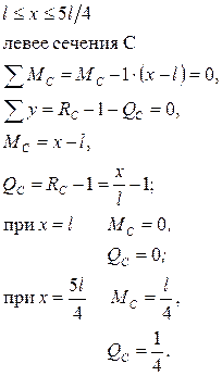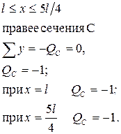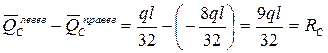 Определяем . В сечении С приложена сосредоточенная сила – реакция опоры С. Поэтому в сечении С так же, как и в сечении А, определяем два значения поперечной нагрузки: одно левее точки С, а другое правее. Разность между этими поперечными нагрузками должна быть равна реакции опоры: