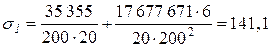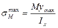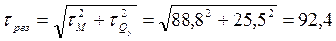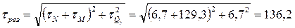Так как напряжения от продольной нагрузки и момента действуют в одном направлении, а напряжения от поперечной силы им перпендикулярны, то результирующее напряжение