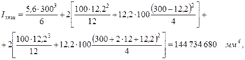 Расчет сварных швов производим методом осевого момента инерции. Согласно этому методу, напряжения в отдельных точках угловых швов от момента, действующего в плоскости контура сварных швов, пропорциональны расстоянию до этих точек от оси . Поэтому максимальные напряжения от момента определяются по следующей формуле: