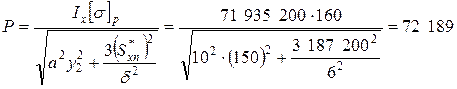 Результирующее напряжение не должно превышать допускаемого напряжения на срез для сварного шва . Определяем величину предельной нагрузки на сварные швы: