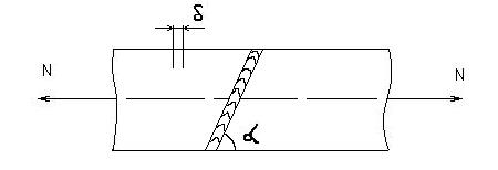 Таким образом, для обеспечения условия равнопрочности сварного шва и основного металла угол наклона косого шва должен быть