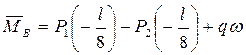 4. Определение величины действующих нагрузок в сечениях A, B и C балки.