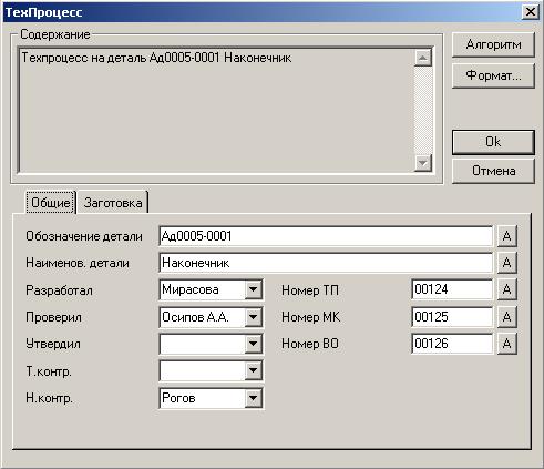 Рис.4. Диалог «ТехПроцесс»
