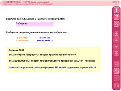 Контрольная работа выполняется с помощью экспериментальной Интернет-версии компьютерной обучающей программы (КОПР) по дисциплине «Экономическая теория (микроэкономика)», предоставляющей студентам целостную систему освоения учебного материала с использованием новых образовательных технологий.