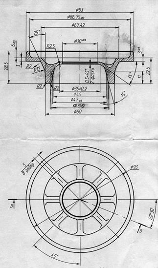 - возможность в ряде случаев сокращения числа металлургических переделов изготовления исходных заготовок для штамповки. Так , например, фланец (рис.1) может быть изготовлен