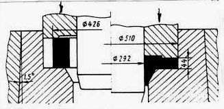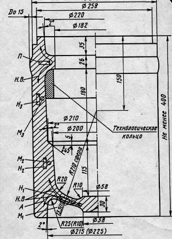 горячей штамповкой выдавливанием из кольцевой заготовки, полученной из полого слитка диаметром 426 м и с толщиной стенки 60 мм;