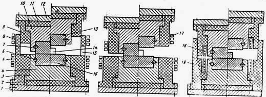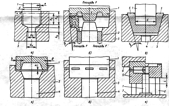 Рис. 42. Конструктивные схемы штамповых блоков для изотермического деформирования: