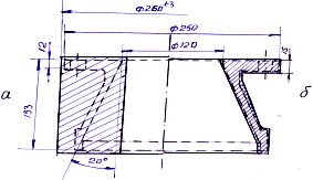 Рис. 4. Чертежи отливки (а) из сплава Al2 и поковки (б), полученной изотермической штамповкой выдавливанием из сплава АК4.