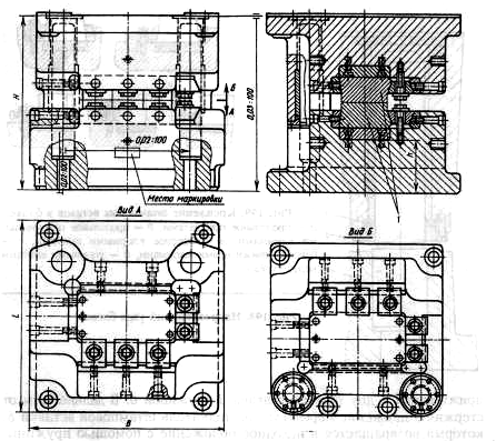 42. Геометрические параметры верхней и нижней плит прессформы из сплава НD87 7022 («HASCO»)