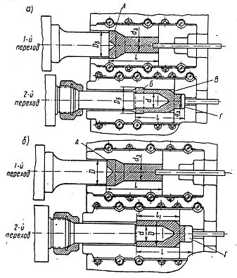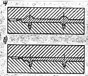 На рис. 4 представлены чертежи отливки (а) и поковка (б), изготовленные литьем (Аl2) и штамповкой из сплава АК4. Штамповка взамен кокильного литья сокращает расход металла в 2 раза. При этом нет необходимости в латунном вкладыше для нарезания резьбы.