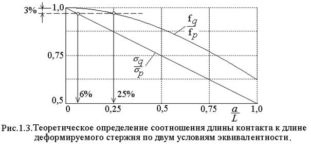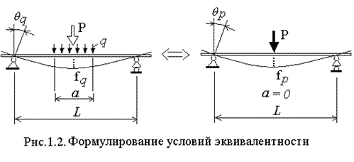 Очевидно, упрощенное представление распределённых сил их равнодействующей сосредоточенной силой можно применять в тех случаях, когда размеры контактирующей поверхности много меньше размеров деформируемых тел. Тем не менее, для определения сопротивления материала в зоне контакта и вблизи его это представление является недопустимым. Понятие "сосредоточенная сила" используется в расчётных схемах (упрощенное представление деформируемых конструкций), когда действие реальных распределённых сил можно считать эквивалентным действию их равнодействующей сосредоточенной силой (рис.1.2).