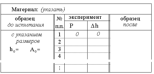2. Эскиз образца до и после испытания (в работах по определению механических характеристик материалов).