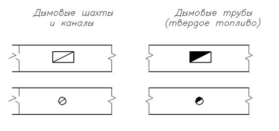 Рис. 12. Условные обозначения элементов сантехнических устройств.