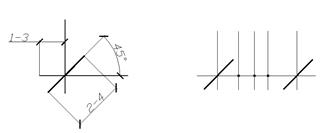линией контура с наклоном вправо под углом 45˚ к размерной линии. При недостатке места засечки можно заменить точками.
