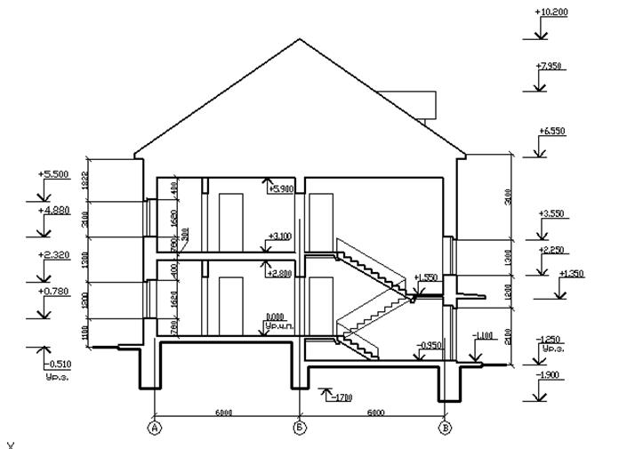 Направление секущей плоскости на разрезе указано на плане 1-го этажа. На самом разрезе делается надпись: РАЗРЕЗ 1-1 или РАЗРЕЗ А-А. При выполнении разреза секущую плоскость не проводят по колоннам, вдоль стен, перегородок, балок покрытий и перекрытий.