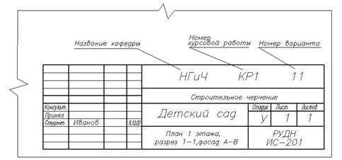 Рис.3. Пример заполнения основной надписи на листах архитектурно-строительных чертежей.