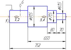 90 х 725 мм с припуском по шейкам вала 5 мм на сторону, материал заготовки сталь 40Х, σв
