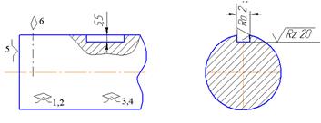1. Устанавливается глубина резания t=5 мм для обработки каждой шейки вала (весь припуск) (см. рис. 1).