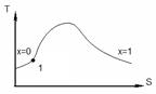 а) Изобразите в диаграмме (s-T) процесс нагрева воды, парообразования и перегрева пара при докритическом давлении (при начальном состоянии «1»);