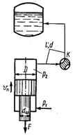 = 20 мм. Трубопровод, по которому жидкость движется из гидроцилиндра через распределитель К в бачок, имеет длину