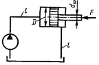 Диаметр поршня D=100 мм, площадью штока пренебречь. Вязкость масла ν=l Ст; плотность р = 900 кг/м3