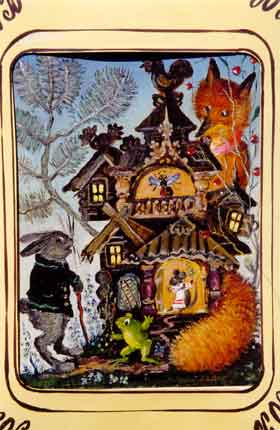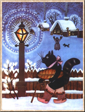 В своих рисунках для детей Ю.А. Васнецов талантливо объединил сказку и реальность. И чтобы ни происходило на этих иллюстрациях, это всегда что-то доброе и светлое, с чем не хочется расставаться ни детям, ни взрослым. В иллюстрациях Васнецова, как в душе ребенка, живет простодушное восприятие мира, яркость и непосредственность, поэтому они для детей – как будто само собой разумеющееся, свое, знакомое. Для взрослого же эти рисунки – давно забытое счастье погрузиться в радостный, наивный, благожелательный мир, где так самозабвенно пляшет круглоглазый заинька, так уютно горят огоньки в избушках, домовито хозяйничает сорока, где мыши не боятся кота, а кот не собирается их есть, где такое круглое и нарядное солнце, такое синее небо, облака, похожие на пушистые блины.