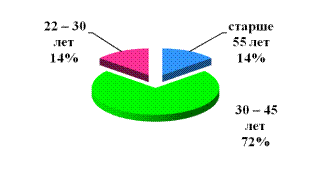 Результат реализации данного проекта – стабильный и высокопрофессиональный педагогический коллектив, имеющий высокую степень лояльности (текучести кадров) 1,2 – 1,4% и оптимальный по возрастной характеристики (см. рис.6) :