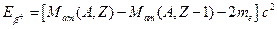 -радиоактивного) ядра должна быть больше суммы масс конечного ядра и электрона. Для рассмотренного примера .