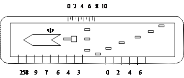 4. Визуально определяют соотношение интенсивностей аналитических пар в спектре, после чего, пользуясь стилоскопическими таблицами (Свентицкий Н.С. Визуальные метода эмиссионного спектрального анализа), дают оценку содержания элемента. В качестве примера в табл.7 и на рис. 7 приведены характерные линии и спектроскопические признаки для оценки содержания хрома в стали с медным противоэлектродом.