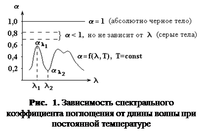 На рис. 1 изображена зависимость спектрального коэффициента поглощения некоторого тела от длины волны при данной температуре (нижняя кривая). При изменении температуры характер кривой может измениться — лучи, сильно поглощающиеся при одной температуре, могут пропускаться при другой температуре и наоборот.