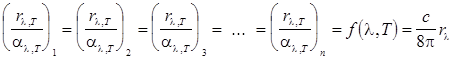 Излучение всех остальных тел подчиняется такой же закономерности, их излучение для каждой длины волны в aT