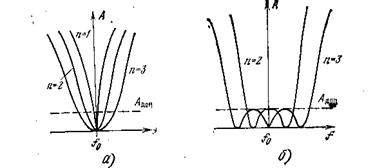 Вид частотных характеристик для разных n дан на рис.1а,б.