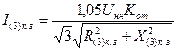 - расчетный максимальный ток трехфазного к.з. в начале проверяемого кабеля (на выводе аппарата), А; определяют по формуле ( 1 )