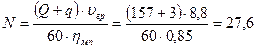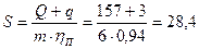 где U=0.65 м/с- скорость движения тягового органа; q- погонная нагрузка, ;