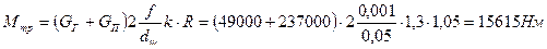 = 0,15-0,2 – коэффициент трения стали по стали при сильном абразиве.