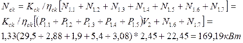 Определяем мощность затрачиваемую на движение и перегибы тягового органа элеватора, а также зачерпывание материала, кВт