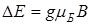Расстояние между подуровнями энергии атома, помещенного в магнитное поле с индукцией B