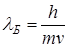 Длина волны, связанная с частицей, обладающей импульсом p=mv, (длина волны де Бройля)
