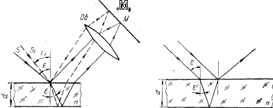 Схема получения интерференционных полос равной толщины и равного наклона.