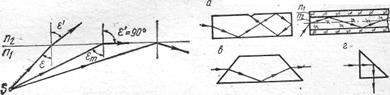 Использование явления полного внутреннего отражения в оптических деталях: а - сетка; б - световод; в - призма Дове; г - призма АР-90о