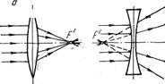 По действию линзы разделяются на положительные и отрицательные (рис. 16). Положительные линзы собирают световые лучи и называются собирающи