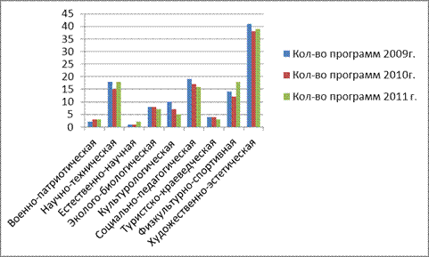 В 2010 – 2011 учебном году Центр творческого развития и гуманитарного образования «Гармония» оказывает дополнительные образовательные услуги по 111 программам дополнительного образования 9 направленностей, что соответствует характеристике вида образовательного учреждения: