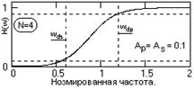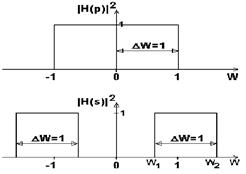 – представляет собой энергетический спектр сигнала (спектральную плотность мощности) и не имеет фазовой характеристики, т.е. является четной вещественной, образованной произведением двух комплексно сопряженных функций H(W) и H*(W), При W → 0 коэффициент передачи фильтра стремится к 1. Учитывая, что результаты вычислений будут относиться к цифровым фильтрам и при z-преобразовании с переходом в главный частотный диапазон произойдет искажение частот, до начала расчетов фактические значения задаваемых частотных характеристик (значения wc