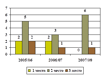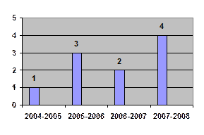 В 2004-2008 учебных годах – количество учащихся составляло 1189 человек. Как мы видим, в течение 4 лет число учащихся в школе сократилось на 53. Надеемся, что Закон «О материнском капитале», принятый Государственной думой, и другие меры правительства РФ в корне улучшат демографическое состояние микрорайона школы.