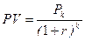 где PV – величина дисконтированных платежей; (1+ r) – множитель дисконтирования; r – ставка дисконтирования, равная ежегодному проценту возврата на инвестированный капитал; к – момент времени.