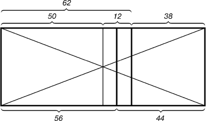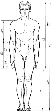 принять за 100 частей, то большая часть отрезка равна 62, а меньшая – 38 частям.