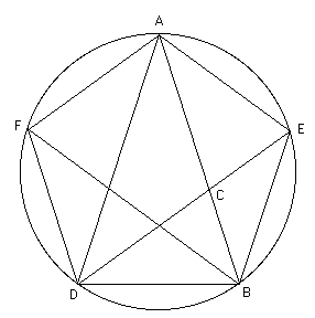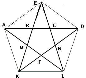 Используя это геометрическое построение, Евклид затем строит «пентагон». Исходным для построения «пентагона» является «золотой» равнобедренный треугольник ABD