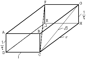 Грани «золотого кирпича» на Рис. 7 представляют собой прямоугольники, геометрические соотношения которых основаны на «золотой пропорции», а именно, грань ABCD